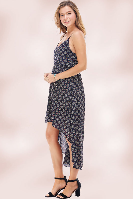 Tank Inset Medallion Prt Hi-Low Midi Dress