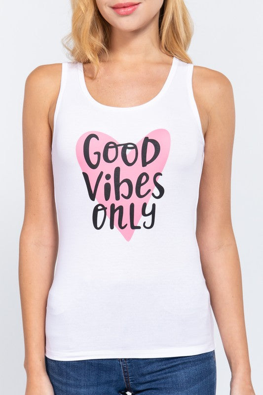 SLEEVELESS ROUND NECK SCREEN PRINT KNIT TOP